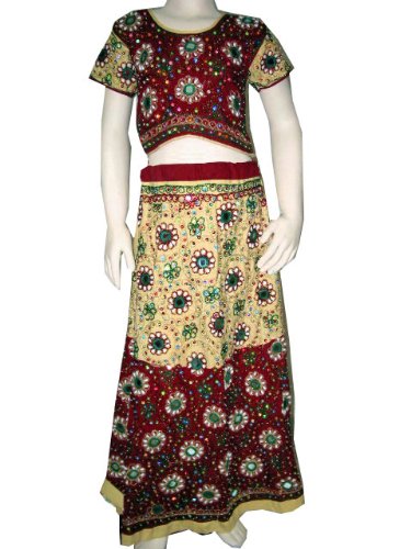 The traditional Gujarat dresses for kids consist of the Chaniya Choli or the Ghagra Choli. This 3pc Indian ethnical Lehanga Choli outfit is made in Gujarat. It is a variety of ethnic wear with excellent workmanship. It is made from 100% Cotton material & is extensively decorated with sequence & Disc work all over with beautiful hand embriodery.Lehanga Choli is the most popular ethnic Indian outfit. The Beautiful Chaniya Choli with Discs & Sequin work make the outfit look stunning. The full work on Lehanga with a golden print on it is making the outfit look more pretty. The choli is also having a similar work making the outfit look more attractive..../ Indian Fashion - Lime Maroon Chaniya Choli Lengha Bollywood Fashion Dress for Kids / Dress Red